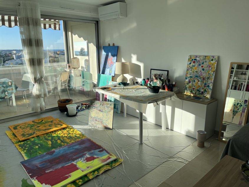 Je vois le monde qui m’entoure comme une multitude de tableaux, de formes, de couleurs, de mouvements, et de ce regard naît la création de ma propre toile quand je suis dans mon atelier.